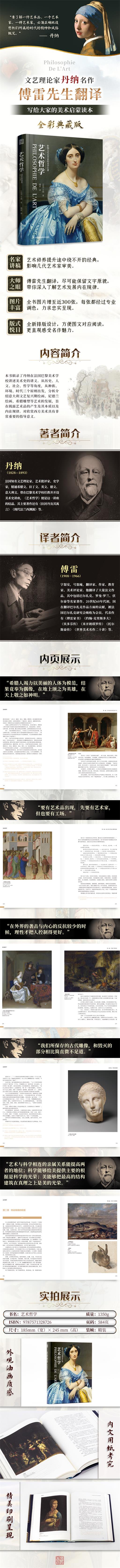 《藝術(shù)哲學(xué)》一書(shū)是由丹納在巴黎美術(shù)學(xué)校的美術(shù)史講座匯集而成。他認(rèn)為,藝術(shù)品的產(chǎn)生及藝術(shù)家的創(chuàng)作雖然看似偶然,但有其內(nèi)在規(guī)律,本書(shū)即從歷史、人文、社會(huì)、哲學(xué)等角度,從種族、環(huán)境、時(shí)代三個(gè)原則出發(fā),分析介紹了意大利文藝復(fù)興期的繪畫(huà)、尼德蘭的繪畫(huà)、希臘的雕塑等藝術(shù)的發(fā)展,旨在揭露藝術(shù)品的產(chǎn)生及其本質(zhì)以及內(nèi)在規(guī)律。