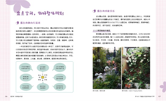 《超實用!我的露臺花園》用簡單易懂的方式講解了打造露臺花園所需要了解的一些內容,例如露臺的功能分區,適合露臺種植的植物和養護知識,露臺的裝飾等,更與讀者分享了一些精心挑選的露臺花園打造案例,同時配以精美的圖片和詳細的文字說明,與讀者分享露臺花園的打造經驗,具有很強的實用性。這些案例都是由園藝達人提供的,這些園藝達人有豐富的園藝經驗,這些經驗都是在打造自家露臺花園的過程中摸索總結而來,并將這些經驗毫無保留的分享給讀者,讓您了如何打造露臺花園及花園的后期維護。本書圖片精美,既賞心悅目又可以帶給讀者真實有用的參考。
