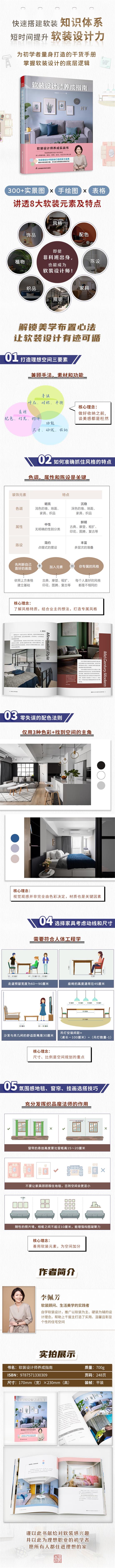 《軟裝設計師養成指南》是軟裝設計師李佩芳女士專門為初學者(軟裝設計師、家居愛好者)所寫的“超干貨”軟裝設計手冊,從風格、收納、配色、照明、家具、布藝等8大軟裝元素講解干貨知識,看完讀者可以快速搭建軟裝知識體系。表面講如何做軟裝搭配,實則字里行間傳達著作者的美學理念和心法,幫助讀者在學習?知識之余,提升自己的家居審美能力。