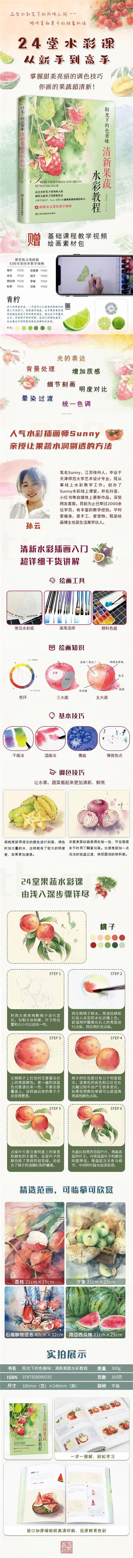 3.人氣水彩畫師Sunny多年積累的水彩寶典,手把手傾囊相授果蔬繪畫經(jīng)驗與技巧。