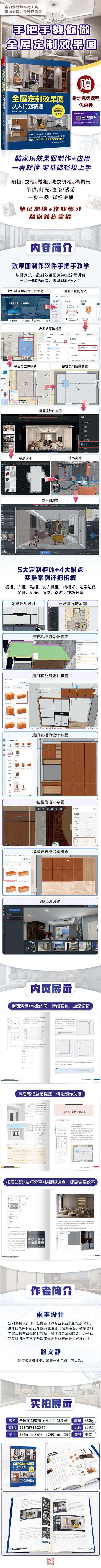 針對關鍵節點設立章節詳細解析,其中包括定制櫥柜設計、手動燈光的添加、洗衣機柜的設計布置、榻榻米衣柜書桌組合、3D全屋漫游等。一步一圖,讀者可以邊學邊做,快速掌握。