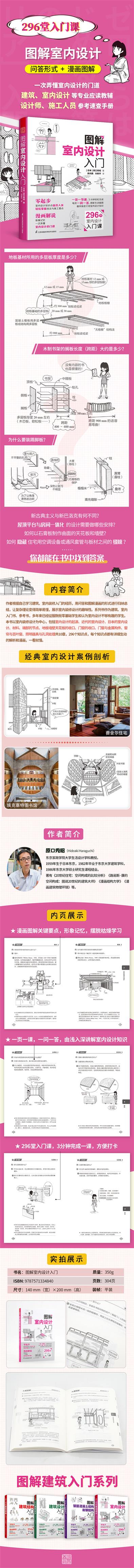 作者根據自己學習建筑室內裝修入門的經歷,用問答和漫畫的形式進行歸納總結,讓復雜理論變得簡單易懂,展示室內裝修設計的趣味性。本系列書作為建筑、室內學習入門的參考書,多年來已經征服無數零基礎學生。本書以室內裝修設計為zhong心,包括室內設計的起源、近代的室內設計、日本的室內設計、材料、端部的收口、地板墻壁天花板的收口等10章,296個知識點,每個知識點都有詳細生動的解析,并配以形象活潑的簡筆畫進行說明,簡明易懂,可接受度高。