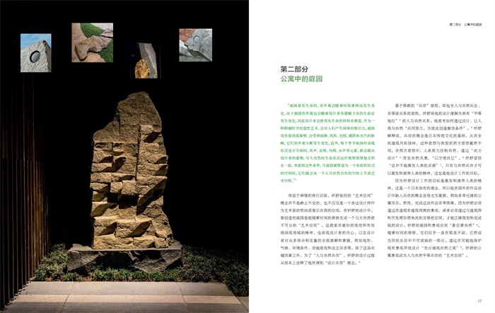 2 項目時間新:不同于市面已有圖書,本書收錄了枡野俊明近期的景觀作品,包括私人住宅庭院、公寓中的庭院和公共空間庭院三大板塊。由學(xué)者米拉?洛克分析闡述,圖文并茂地展示了近400張高清圖片。每個項目配以實(shí)景、平面圖、分析圖等,并相應(yīng)提煉出15條設(shè)計原則,有利于景觀設(shè)計師學(xué)習(xí)設(shè)計要點(diǎn),啟發(fā)設(shè)計靈感。