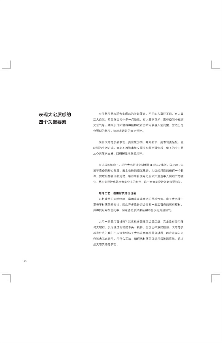 “以大宅設計業主為本”,對空間和行為進行梳理和整合,從平面格局、材質細節及陳設藝術進行論述及拆解,不只整理歸納張清平大宅設計的手法,還提出他一直以來堅持的好宅的設計理念。因為即便是大宅,目的一定是為居住者提供愜意的生活空間。打破過去大宅業主只講形式,不求品味質感,引導業主從空間、生活細節到美學風格,建立大宅主人應有的生活方式。