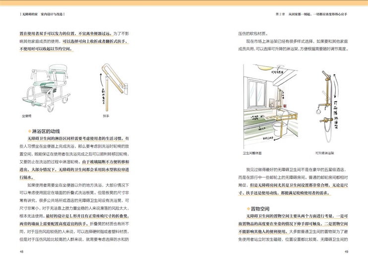 本書圖文并茂,結(jié)合60幅手繪圖和20幅室內(nèi)實景,有助于讀者直觀了解家居無障礙設(shè)計的要點,方便室內(nèi)設(shè)計師獲悉特殊群體業(yè)主的真實需求。