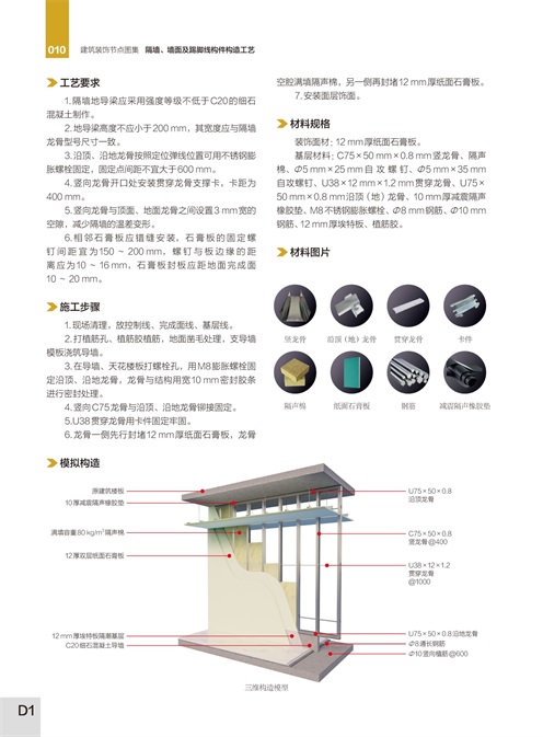 D1.3 C75 三面石膏板雙排龍骨隔墻構造 014