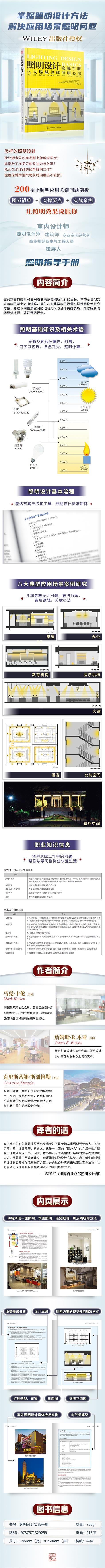 4.職業技能。介紹了照明設計職業相關的一些額外的知識和信息,擬幫助讀者完成從學習到執業的過渡。很多章節中穿插了一些與技術和建筑相關的附加信息,稱為“電氣師筆記”,供想深入了解照明及相關領域的讀者參考。