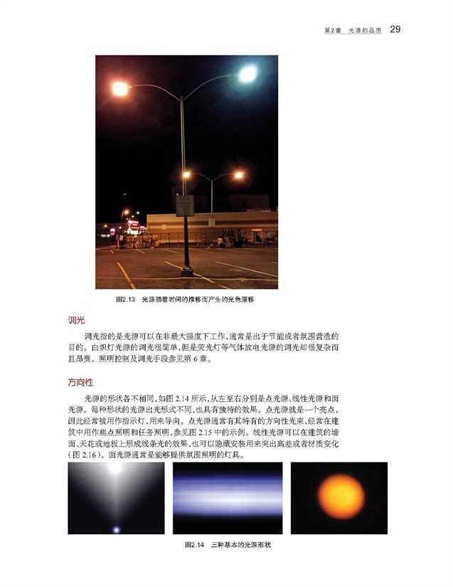 1.照明基礎知識。前八章介紹了有關照明設計的一些基礎知識(及相關術語),其深度足以滿足本書讀者的需求,不對個別技術問題做太多展開。具體涉及的技術問題包括光源及其顏色屬性、燈具、開關及控制、自然采光、照明計算等。