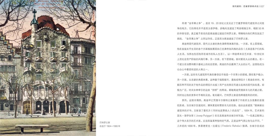 本書不僅是一部關(guān)于高迪建筑美學(xué)的專著,更記錄了20世紀(jì)初巴塞羅那“金蘋果之爭”——一場由巴特羅之家、阿馬特耶之家與萊奧·莫雷拉之家共同演繹的建筑史詩。在工業(yè)革命催生的財富浪潮中,格拉西亞大道的富豪們以建筑為勛章,三大現(xiàn)代主義建筑師(高迪、普伊格、蒙塔內(nèi)爾)在此展開無聲較量,宛如希臘神話中爭奪金蘋果的故事。