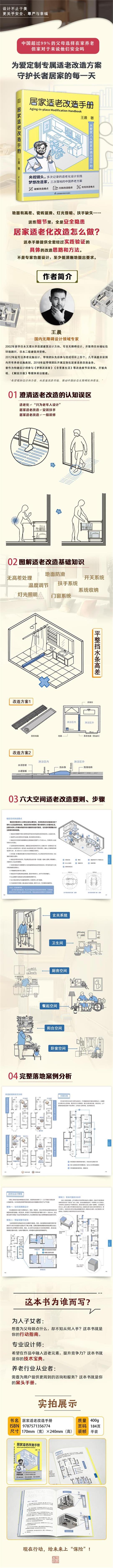 這不僅是寫給設(shè)計(jì)師的技術(shù)指南,更是適合大眾閱讀的實(shí)用手冊,幫助讀者用專業(yè)思維為長者打造安全、舒適的家,讓設(shè)計(jì)回歸“人性”本質(zhì),真正為老人創(chuàng)造幸福晚年。