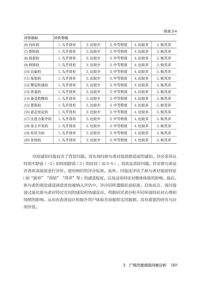 《人性化廣場設計:人因工程實踐》主要介紹了公共廣場在滿足人性化的多元需求下的蕞佳尺度,以及廣場尺度與周邊建筑高度對使用者的生理和心理狀態的影響。本書作者通過綜合應用虛擬現實技術、心理評估問卷以及生理參數測量(腦電波、皮膚電導、光電容積脈搏波),全 面分析了公共廣場尺度和周邊建筑高度對人體舒適度的影響,為廣場設計及人類健康研究領域提供一種新的視角和研究方法,其研究過程分為以下三個重要部分:首先,通過構建不同尺度的公共廣場虛擬環境,采用積極與消Ji情緒評定量表及空間感知問卷,收集了參與者在多樣化虛擬環境中的心理反應數據。其次,采用腦電圖、皮膚電反應以及光電容積脈搏波這三種生理信號測量技術,收集參與者在不同虛擬環境下的生理反應數據。蕞終,基于以上的問卷調查、實驗與數據分析,提出了以生理數據為支撐的公共廣場設計策略。這些策略旨在調和廣場尺度與周邊建筑高度的關系,以增強公共空間的舒適度和吸引力,為未來的廣場設計和人類健康研究提供新的思路與方法。