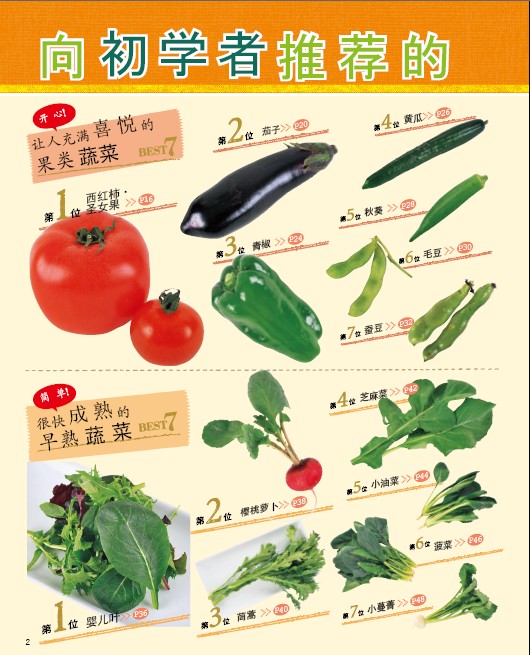按照蔬菜特性,分為果類蔬菜、早熟蔬菜、廚房蔬菜、強抵抗力蔬菜四類。方便讀者按照自己的喜好,查找適合的蔬菜種植。(可隨書附贈菜籽)?