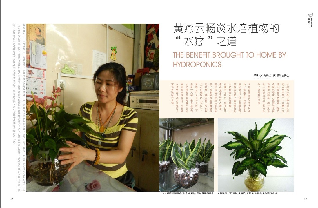 This issue of Horticulture Home is all about water and hydroponic plants, which is rare on the market. From the beginning we are benefited a lot from experts’ suggestion and help, so the quality and veracity of this issue could be guaranteed. The theme of this issue is set as “Green Word of Water”. Simply speaking, this issue gives the introduction of water and hydroponic plants for families, including the skills and experience of plants’ caring and growing. Further, this issue turns the professional and horticultural knowledge into easy-understanding articles, also some other interesting plants and latest information is added, which enhance the issue’s attraction.