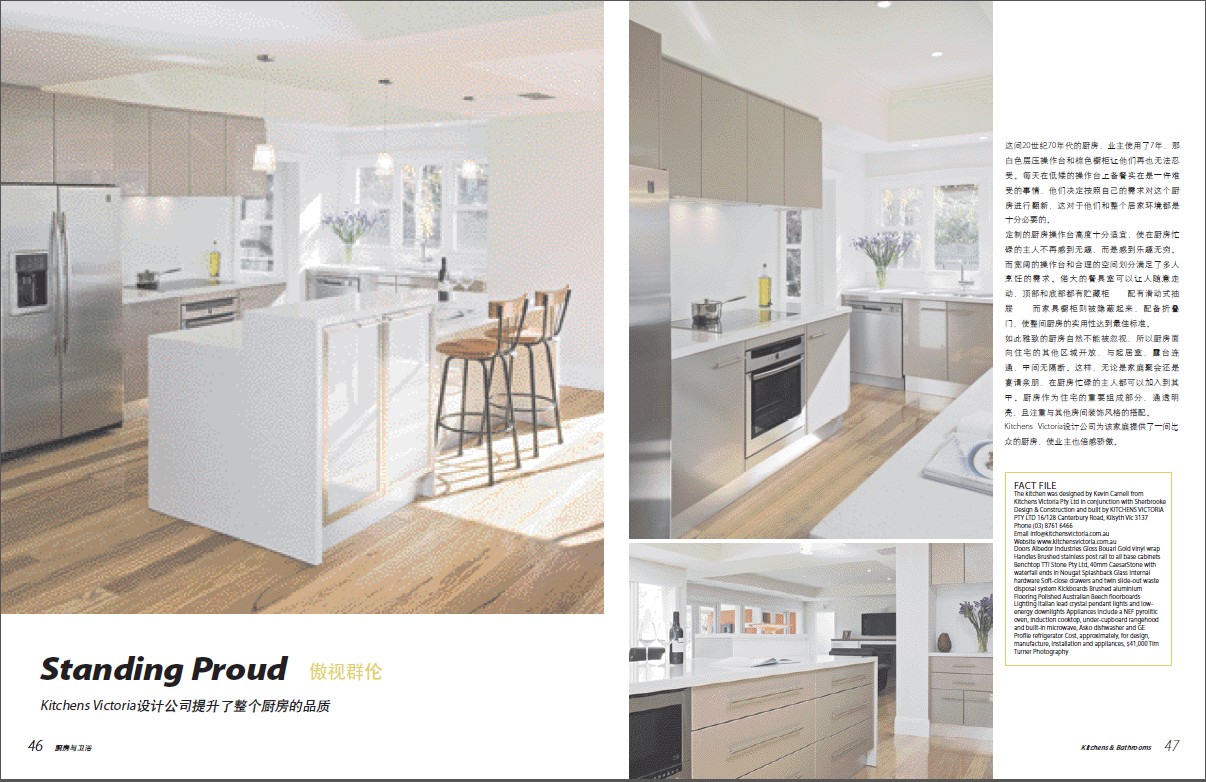 《廚房與衛浴》(Kitchens & Bathrooms)是中國首本高端時尚廚衛雜志。我們攜手住房工業協會(HIA)、國際室內設計師及建筑師聯盟(IFI)、國際工業設計師聯合會(ICSID)等多家極具影響力的專業機構深度合作,向全球讀者展示國際先進的廚衛設計理念、頂級室內設計作品及前沿產品信息。雜志著眼于產品設計、空間布局合理化、燈光營造、材料應用等方面,用極具視覺沖擊力的照片,詮釋最新經典案例。我們秉持“設計生活,審美至上”的原則,堅持專業視角,提供最新國際設計,讓設計美好生活.