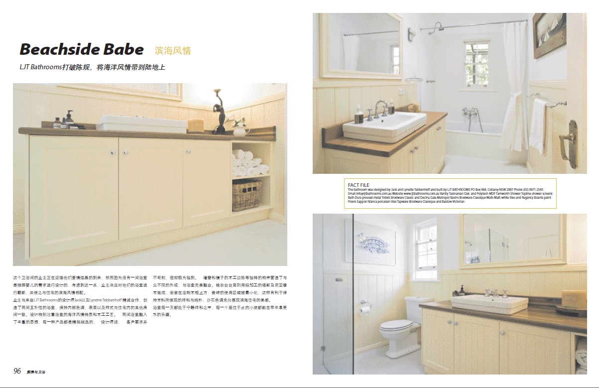 本刊英文版Kitchens & Bathrooms由澳大利亞最專業的出版集團之一Universal Magazines出版發行。多年來,Kitchens & Bathrooms向全球數以萬計的讀者詮釋了廚衛產品最新設計理念及尖端產品信息,并始終以敏銳的洞察力及精準的市場定位穩居澳洲同類雜志暢銷榜首位,同時也是歐美久負盛名的廚衛專業雜志。2012年起,鳳凰出版傳媒集團全版權引進《廚房與衛浴》雜志,與Universal Magazines強強聯合,打造適合中國的高端廚衛雜志。我們“空間納天地之圓方,鳳凰集建筑之所長”,藉由本社建筑行業背景,《廚房與衛浴》(中文版)必將成為中國室內設計、廚房衛浴及其相關行業的權威雜志。