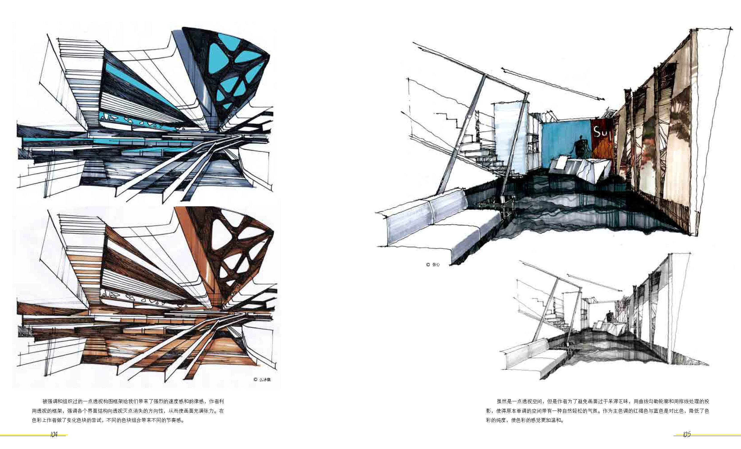 《從基礎(chǔ)到風格-室內(nèi)外手繪教程》的前半部分內(nèi)容涵蓋了室內(nèi)手繪效果圖的基礎(chǔ)知識點,包括透視、調(diào)子、單體表達、局部組合、立面造型、手繪步驟、概念手繪等內(nèi)容。后半部分則是在知識點的基礎(chǔ)上,深化室內(nèi)手繪效果圖的表現(xiàn)風格和審美格調(diào),為專業(yè)學生提供不同的臨摹范本。