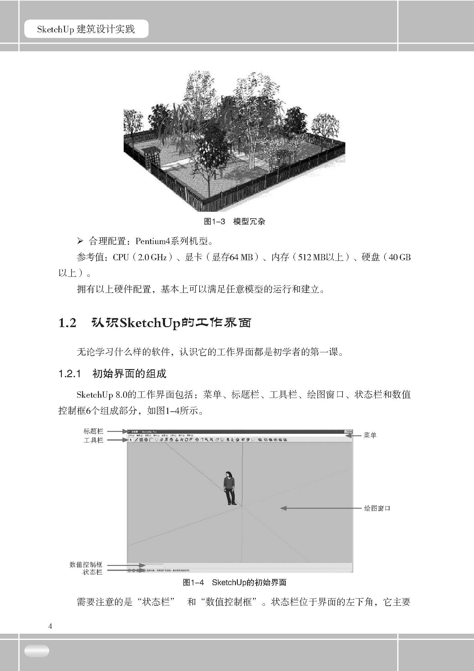 1.2認識SketchUp的工作界面… …………………………………………… 4