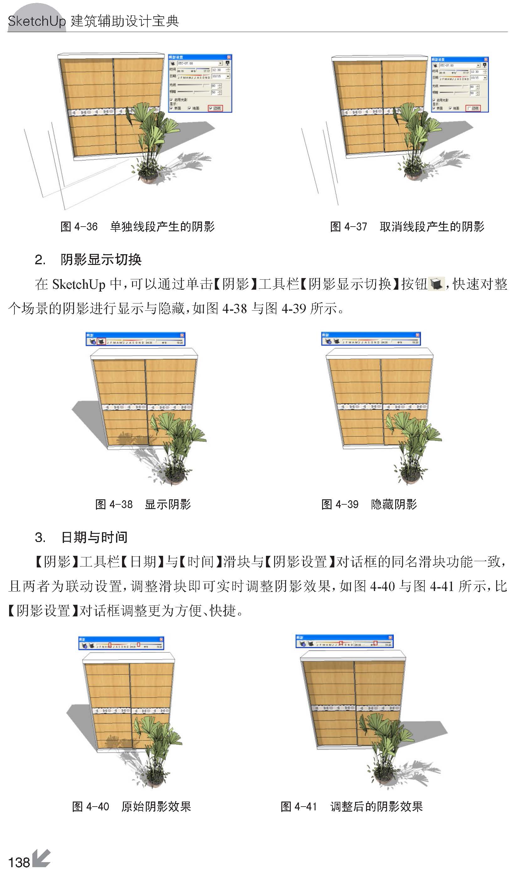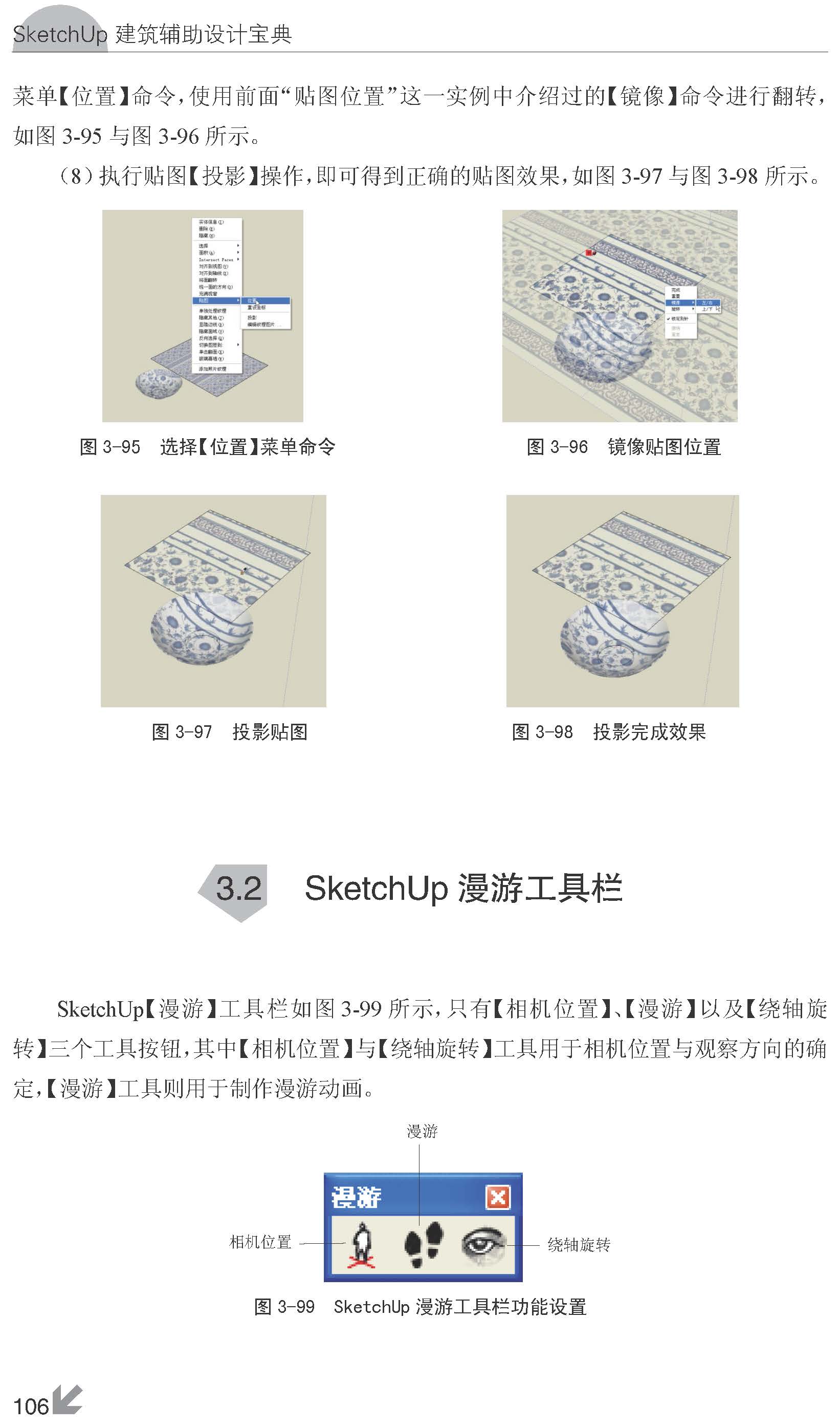本書(shū)全面介紹了易學(xué)易用、功能強(qiáng)大的三維軟件SketchUp草圖大師,從實(shí)際應(yīng)用的角度出發(fā),通過(guò)大量專業(yè)實(shí)例,由淺入深地講解了建筑草圖大師的基本知識(shí),配套DVD教學(xué)光盤。本書(shū)適合廣大室內(nèi)設(shè)計(jì)、建筑設(shè)計(jì)、城市規(guī)劃設(shè)計(jì)、景觀設(shè)計(jì)的工作人員與相關(guān)專業(yè)的大中專院校學(xué)生學(xué)習(xí)使用,也可供房地產(chǎn)開(kāi)發(fā)策劃人員、效果圖與動(dòng)畫(huà)公司的從業(yè)人員參考。