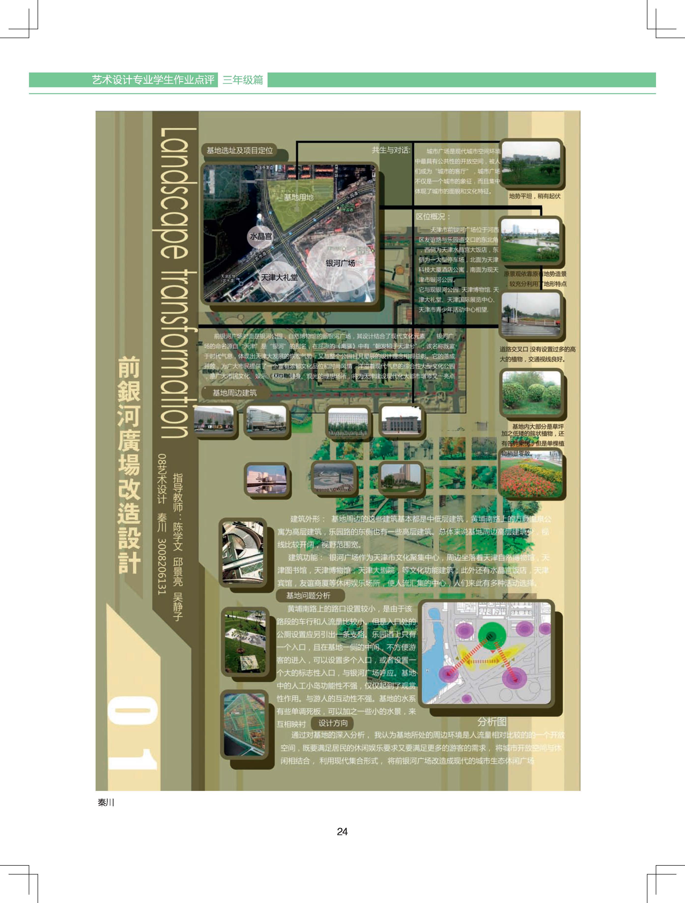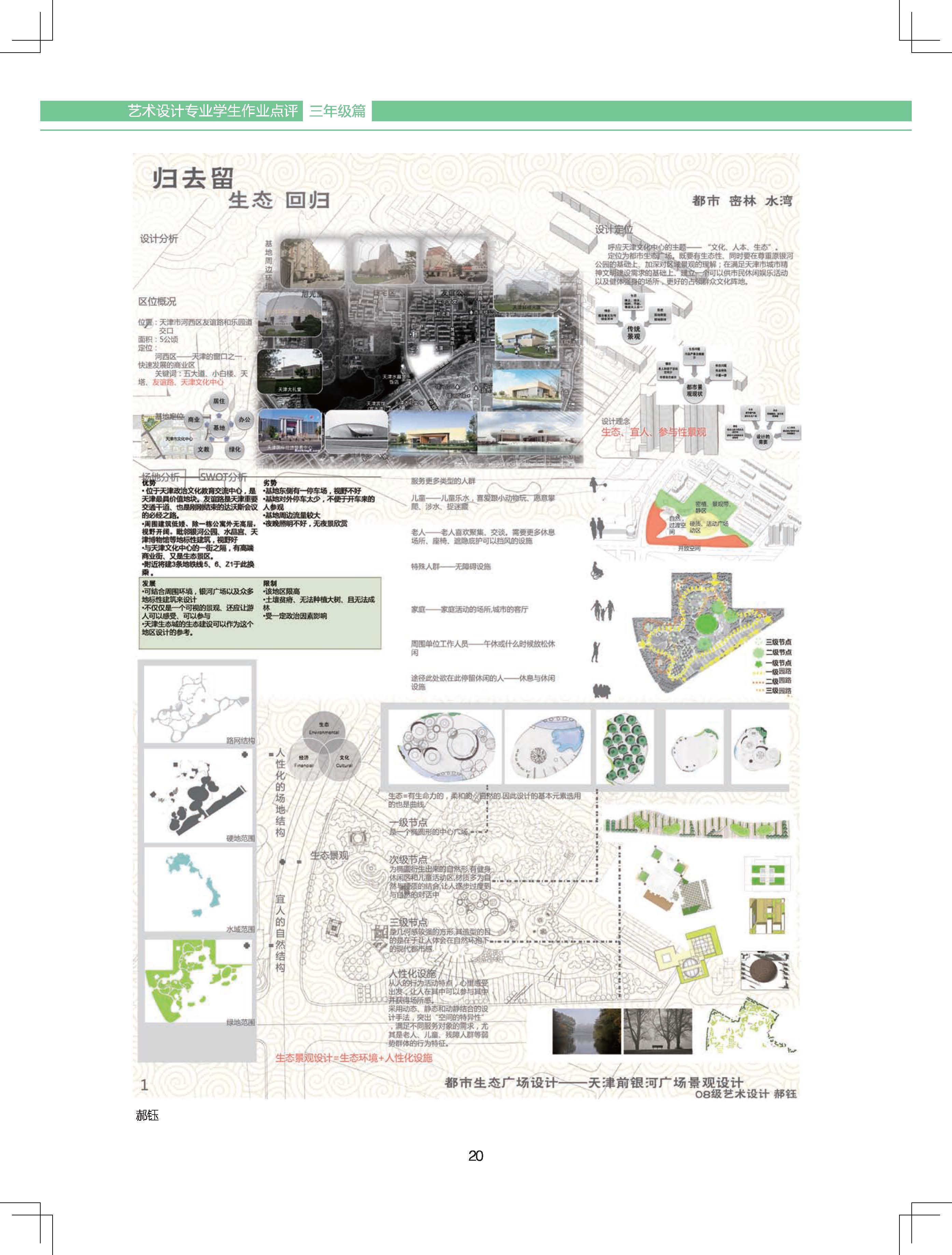本書包括銀河公園、居住區(qū)、橋梁景觀、生態(tài)公園、庭院景觀等景觀作業(yè),快捷酒店、居住空間等室內(nèi)作業(yè)的點(diǎn)評(píng),講授認(rèn)識(shí)調(diào)查的方法、強(qiáng)調(diào)認(rèn)識(shí)調(diào)查的內(nèi)容、增強(qiáng)學(xué)生對(duì)場(chǎng)地的認(rèn)知感,使學(xué)生能夠深入細(xì)致的完成調(diào)研工作,開拓創(chuàng)新思維,鍛煉學(xué)生在實(shí)際情況中發(fā)現(xiàn)問(wèn)題與解決問(wèn)題的能力,同時(shí)強(qiáng)調(diào)課題的真實(shí)性與實(shí)踐性。