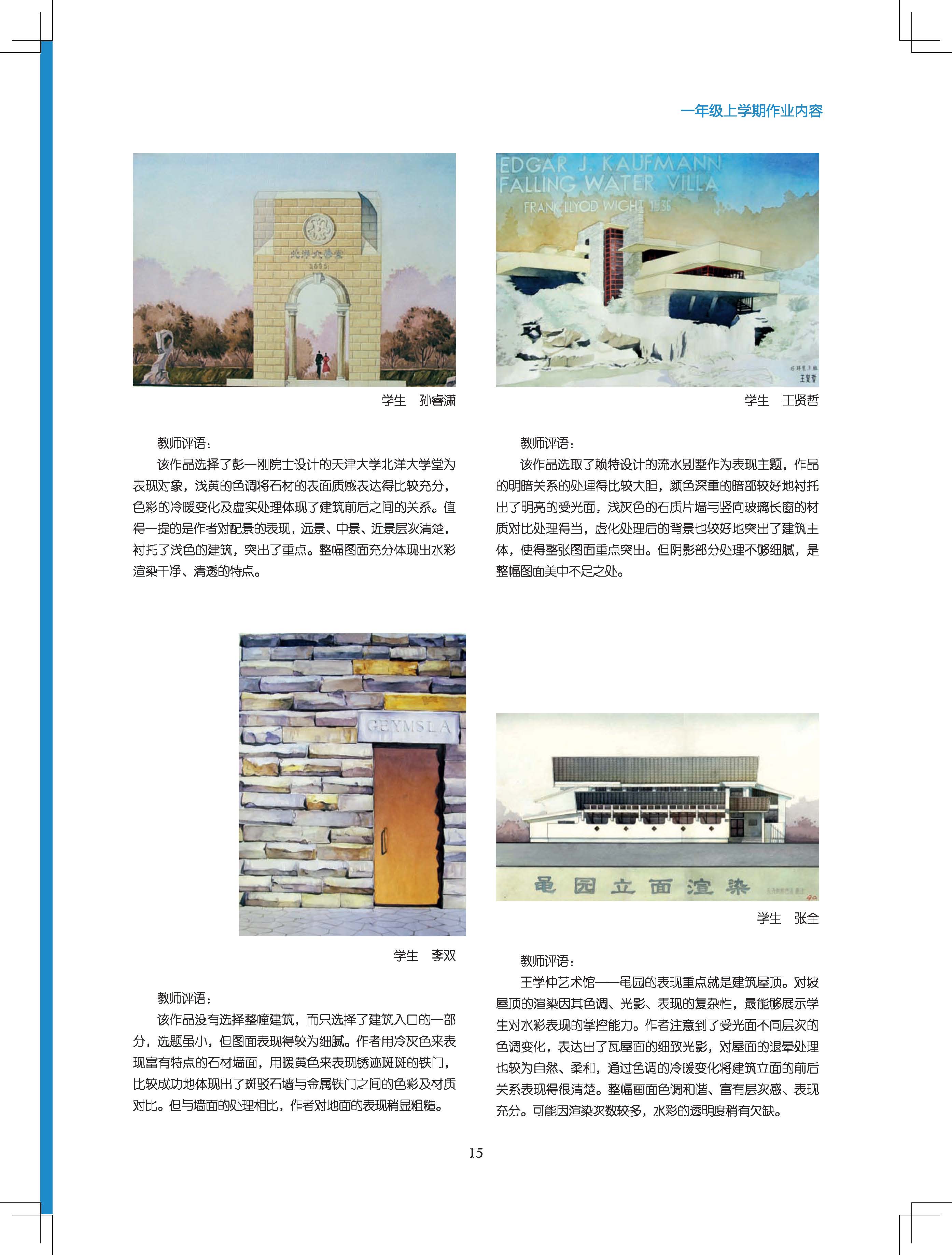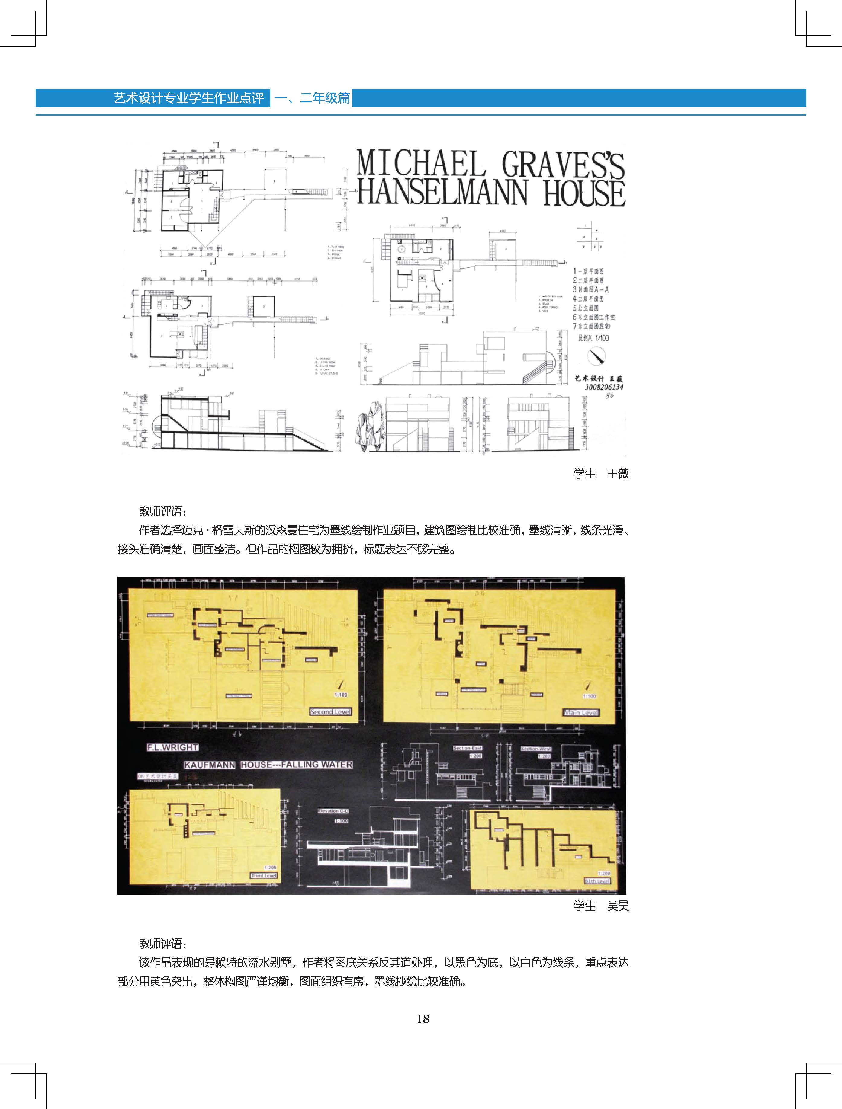 本書包括一年級作品點評和二年級作品點評兩部分,一年級的第一學期的課程主要注重對學生傳統技能的訓練、建筑知識體系的建立、學生建筑背景知識的完善、良好的學習方法和學習習慣的培養,并且強調對學生創新能力的激發。第二學期以空間為主題,通過一系列由簡單到復雜、由概念性空間到實用性空間的創造過程,更注重對學生的空間想象和塑造能力的啟發、模型手段運用的強化、三維對應關系的建立,培養學生的空間創造潛能和初步設計的基本技能、創新思維意識。二年級的課程主要以建筑方案設計為主,室內設計、景觀設計元素認知為輔。