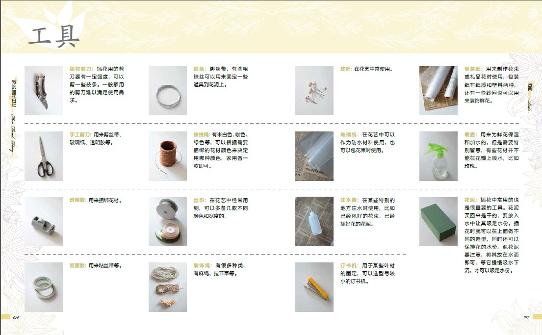 1.本書作者是一線的花藝設(shè)計師,書中偏重實際操作的可行性,從花材的選擇到插花的步驟都考慮到讀者的實際情況。
