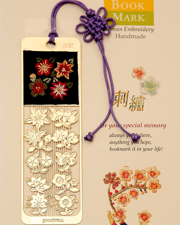 韓國(guó)Goodwill書(shū)簽采用24K鍍金,造型獨(dú)特多變,刺繡、鏤空打造,通透細(xì)致,薄如蟬翼,精細(xì)質(zhì)感。花、葉、昆蟲(chóng)等鮮活的姿態(tài)與生動(dòng)的顏色被精美地定格在書(shū)簽里,讓您在書(shū)香四溢中呼吸自然的氣息,陪你在歲月中長(zhǎng)久的感動(dòng)。
